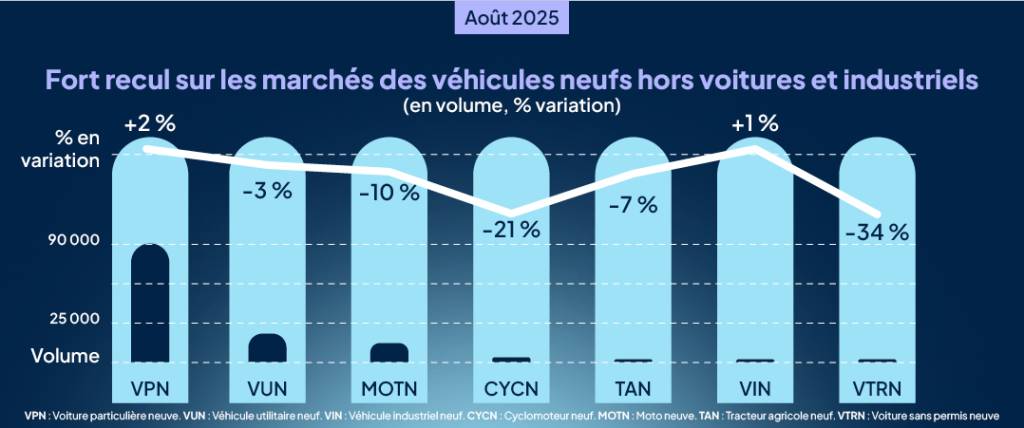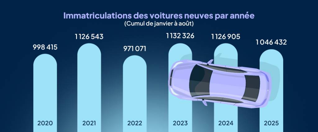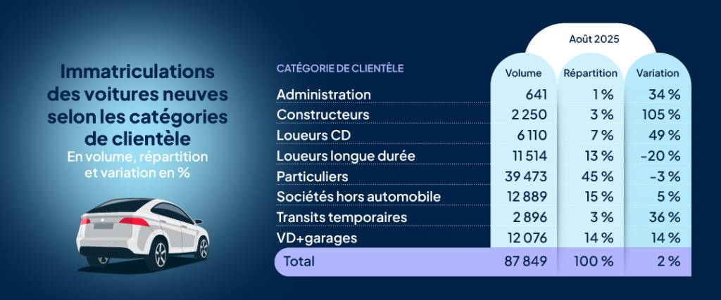 Le marché des voitures neuves parvient à clôturer son premier mois dans le vert depuis le début de l’année : les immatriculations de voitures neuves gagnent +2 % en août. La base de comparaison d’août 2024 était, toutefois, particulièrement faible.